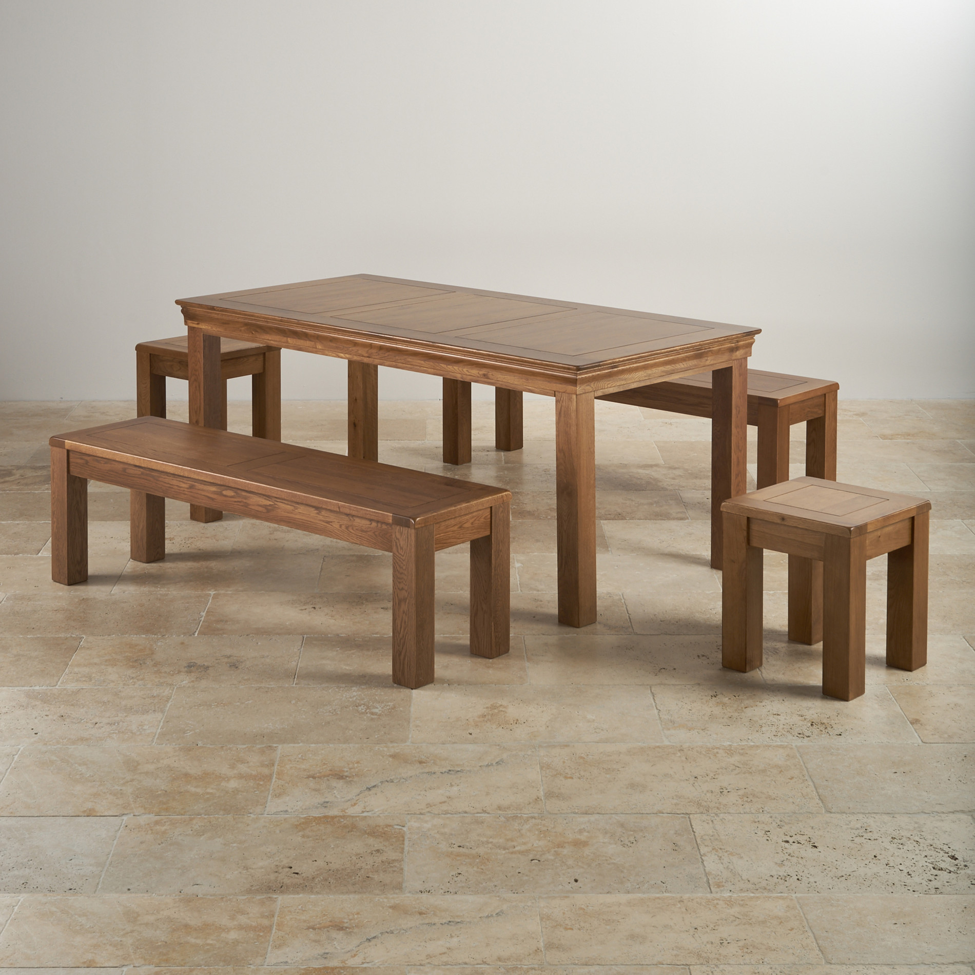 Rustic Oak Farmhouse Table And Chairs - French Farmhouse Rustic Solid Oak Dining Set - 6ft Table with 6 Farmhouse and Beige Plain Fabric ... - This lovely piece of furniture is made from reclaimed natural spruce for a rustic, raw appearance the table doesn't come with seating, but the brand does offer hart reclaimed wood dining chairs for a perfect match.. Something we love about this table is the oak wood tabletop and the variety of neutral color choices for the base. Rustic country furniture rustic farmhouse table country interior master bedroom bedroom decor custom builders rustic elegance furniture inspiration this was a pretty bamboo chair. The old wicker set is certainly charming. The hard part was the sanding and the painting/staining. Either a standard wood plank top, an existing top or rustic cedar table with chairs and benches.