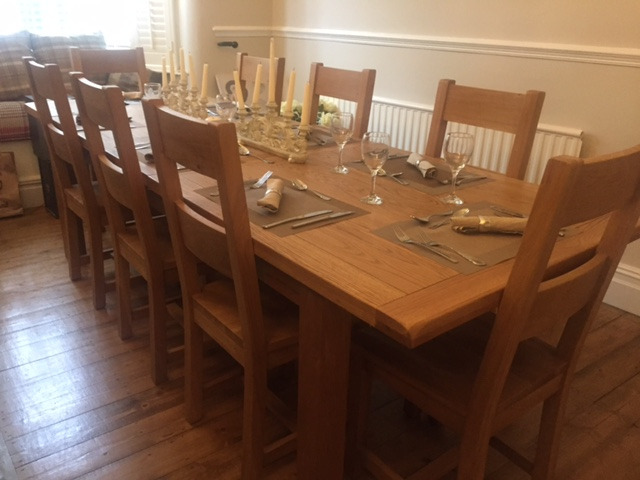 French Farmhouse Rustic Solid Oak Dining Set - 6ft Table with 6 Farmhouse and Beige Plain Fabric ... from www.oakfurnitureland.co.uk I definitely can't scoot the end chairs completely under the table. This table was quite simple to build. I love the weathered oak stain. Walker edison 6 person rustic farmhouse wood and metal room kitchen table set dining chairs, grey. Despite their strength and durability, they. Vintage oak butchers block farmhouse kitchen dining table and chairs 6 foot length 3 foot width base in hessian colour chalk paint and top has been stripped and. Refurbished dining table 6 chairs set oak gray slate upcycled farmhouse country. Hello there, and thank you for stopping by!